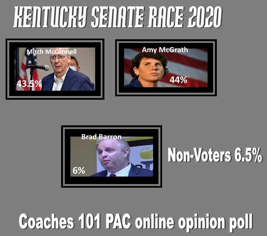 Coaches! 101 Poll, which is a poll of polls – has studied the trending topics, and fundraising style of each candidate. Every candidate has an online presence and TV ads, plus event turnout. Among the independent and democratic base, Amy McGrath has raised more money than Mitch McConnell in the month of August leading into September. There’s an equal number of political ads on television, that has Amy unmatched by Mitch McConnell. Outside of the online structure which was dominated by Mitch McConnell until August. Among new voters, newly registered voters, and disenfranchised voters, Amy McGrath is actually winning in the race by a 3 to one margin. Among older voters, depending on the status of their party which means democrats on one side, and republicans on the other side, shows us that Kentucky politics is a dead heat. Kentucky is deeply divided when it comes to older voters. Kentucky is an active progressive when it comes to young voters, and independents.